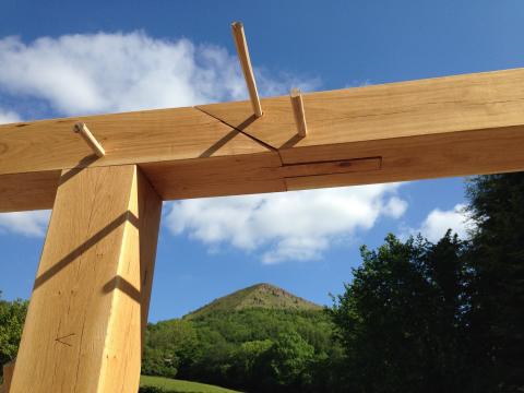 Brace detail, all brace mortices are housed to hide shrink gaps.