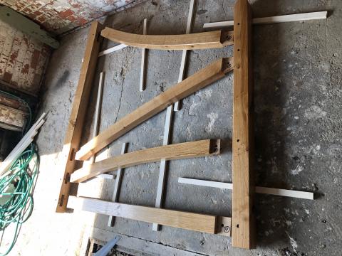 I used Oak for the frame and shiplap cladding with 6 coats of oil so the wood will silver with age.